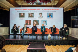 Valerie Creighton, C.M., S.O.M., President & CEO, Canada Media Fund; Niamh Fagan, Project Manager Feature Film, Fís Éireann / Screen Ireland. Panellist not pictured but joined via Zoom: Anna Serner, CEO, Center for Investigative Journalism and Former CEO, Swedish Film Institute.